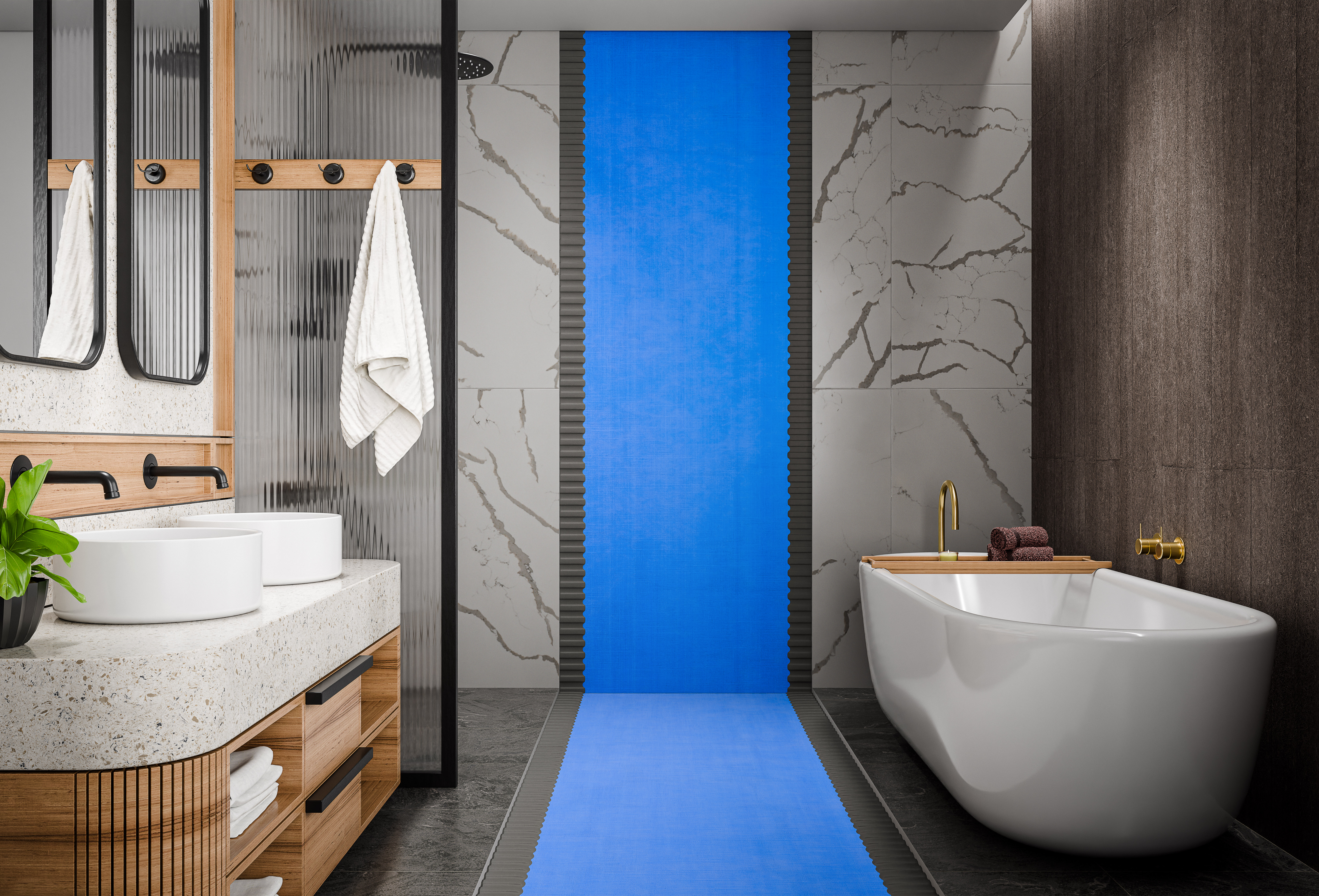 聚丙烯材料的柔性基材,能有效的隔离水和潮气。在用水量大和潮气较重的位置使用。如地下室、卫浴间、阳台。FAB 050-B隔离垫能够桥接细小裂纹,配套管件封口、抗裂连接带、阴阳角等密封组件。 聚丙烯环保材料,健康安全的防水防潮隔离垫